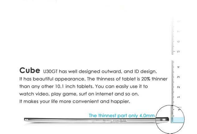 | What’s in the box: | 1 x Original Cube U30GT Tablet pc?1 x USB Cable?1 x AC Charger?1 x Ear Phone?1 x OTG Cable?1 x Original box |